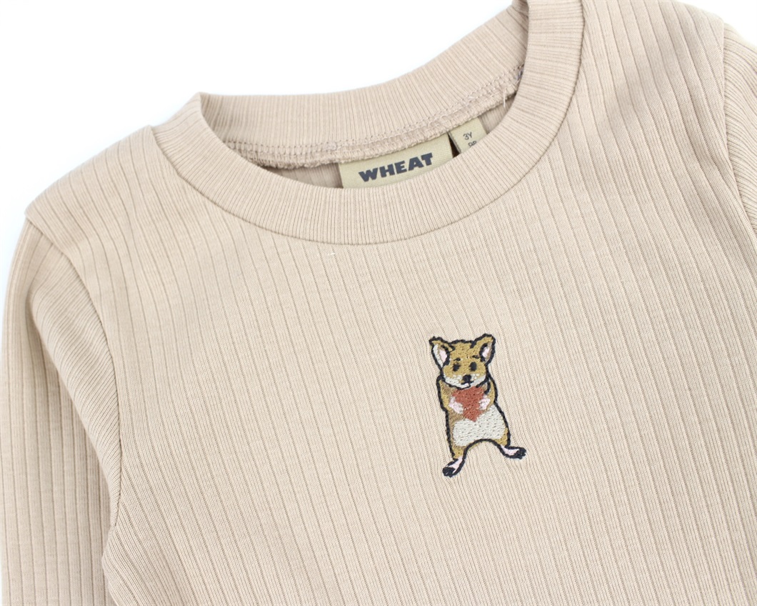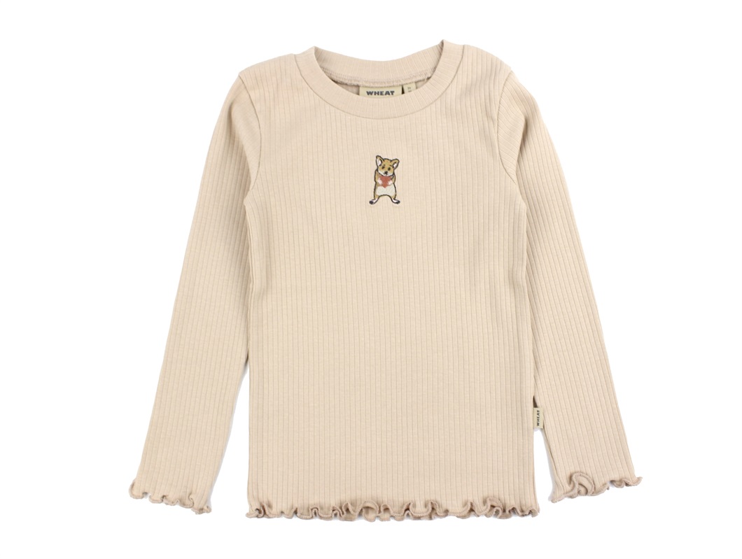 Blød ribbet bluse i farven moonlight rose fra Wheat.