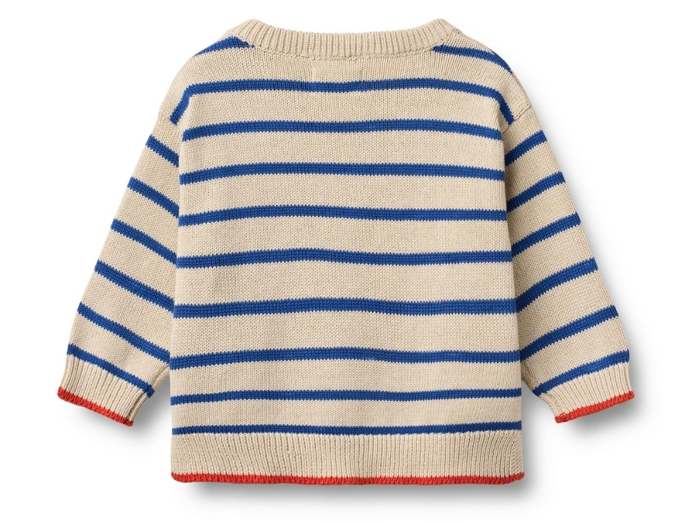 Wheat Morgan striktrøje i beige med blå striber til de mindste