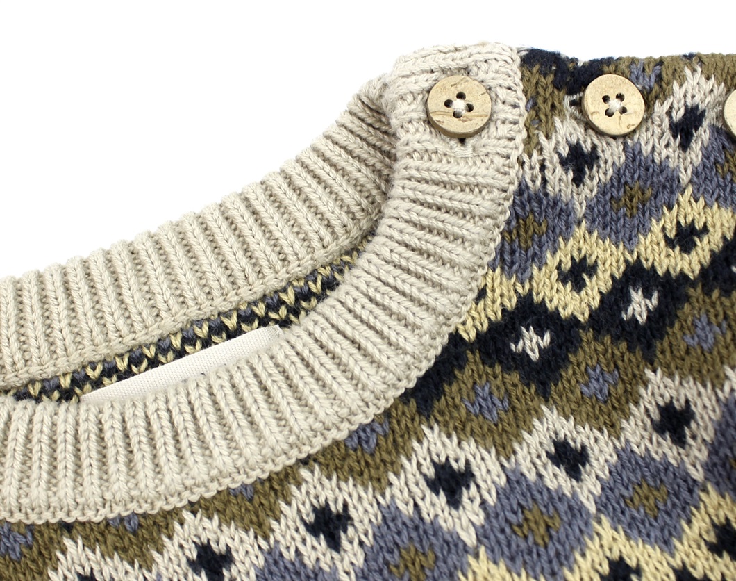 Striktrøjen er lavet af blødt økologisk bomuld.