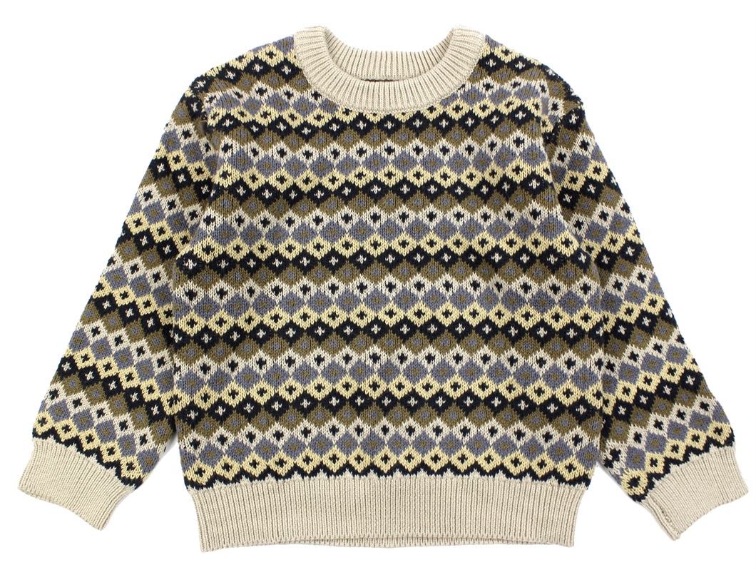 Skøn striktrøje med jacquard-mønster i farvetemaet multi blue fra Wheat.