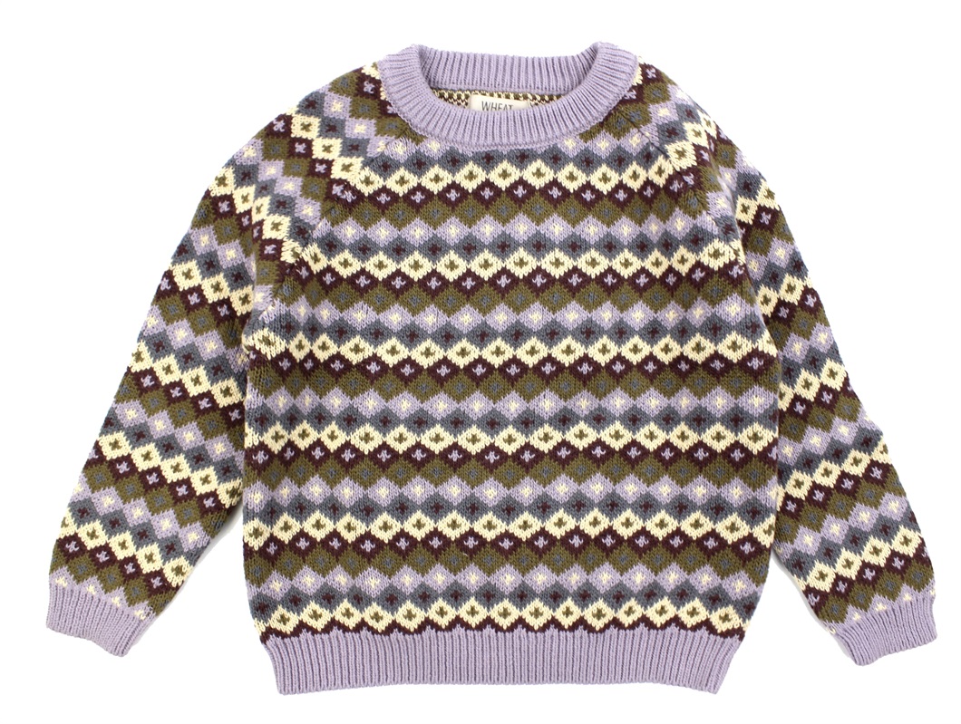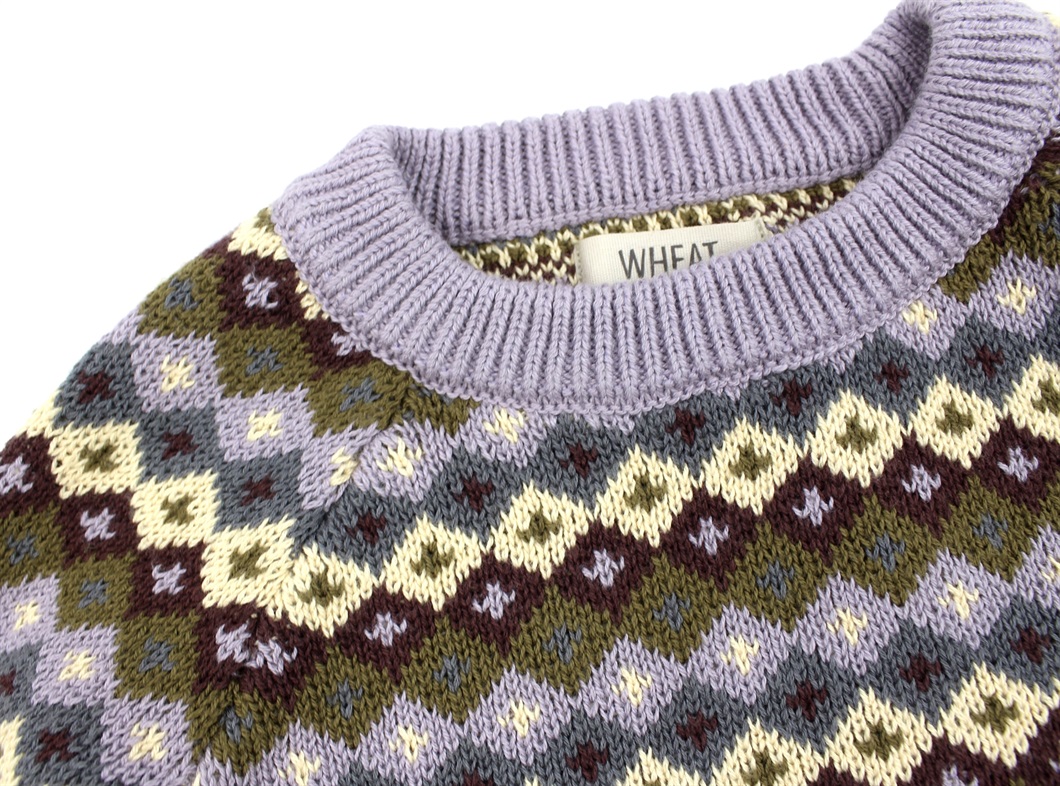 Smuk striktrøje med jacquard-mønster i farvetemaet multi lavender fra Wheat.