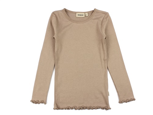 Klassisk wheat t-shirt i rib i farven nougat rose med blondekant.