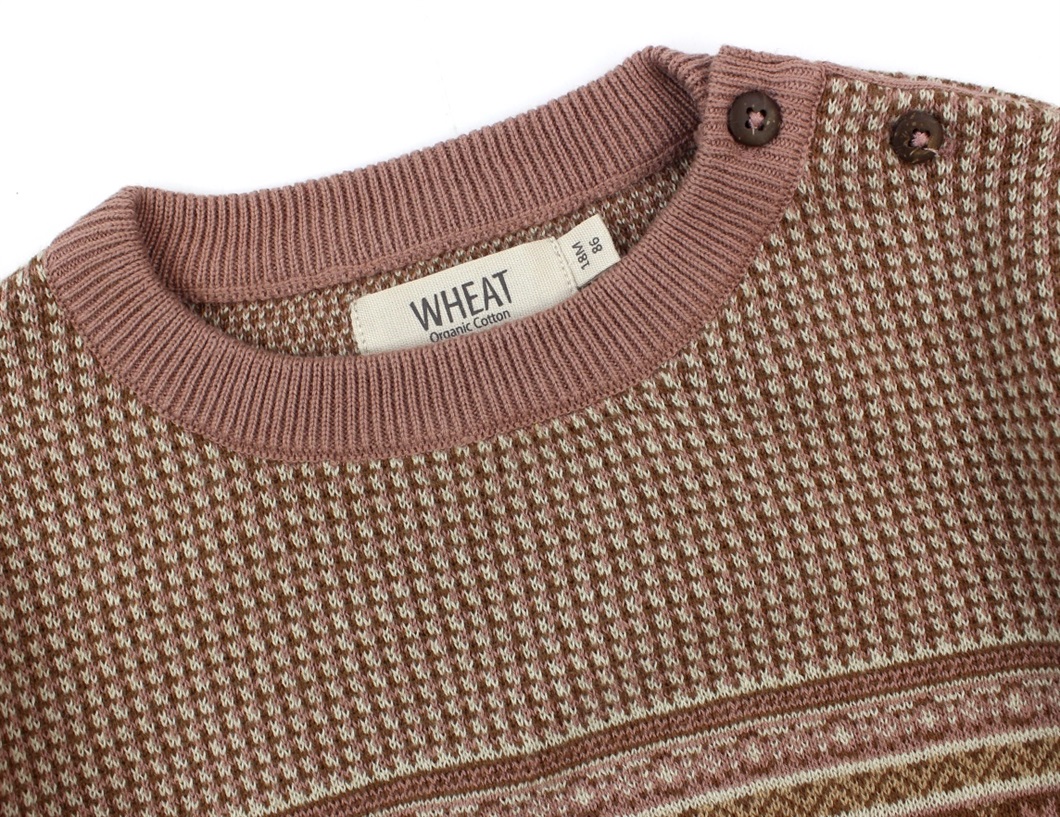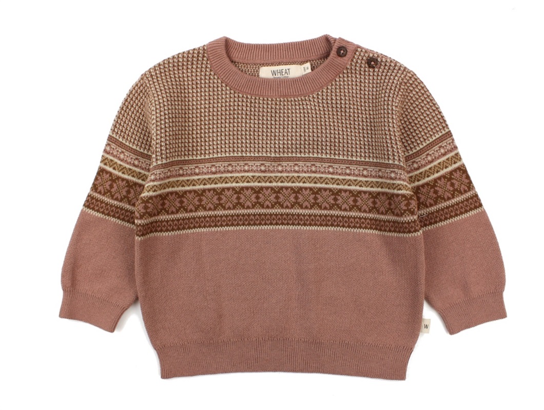 Striktrøje med jacquard-mønster i farven powder brown fra Wheat.
