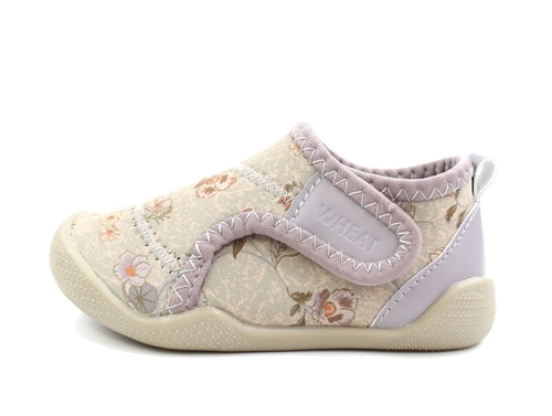 Badesko/strandsko med blomster fra Wheat. Skoen lukkes med velcro.