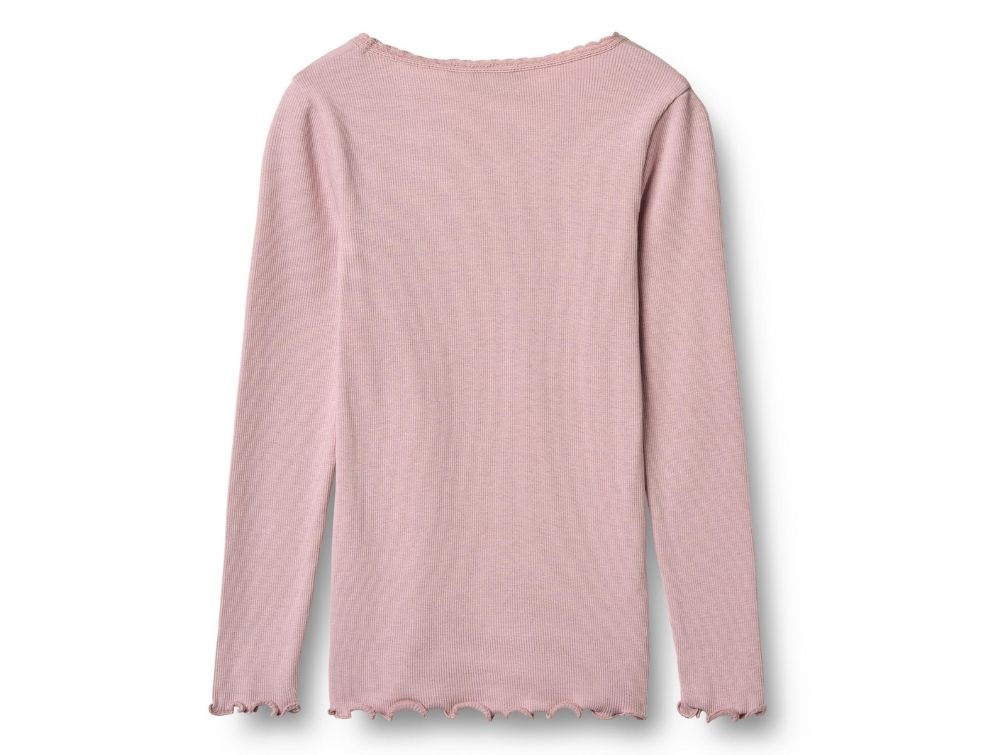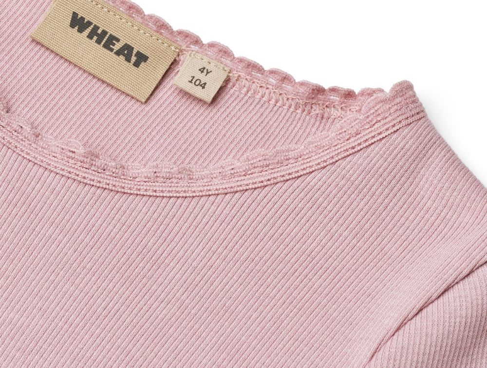 Top i rib i lavendel (lavender mist) med blondekant fra Wheat.