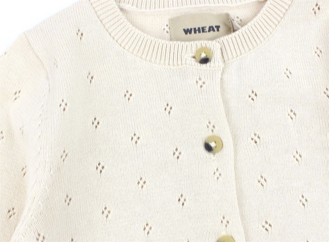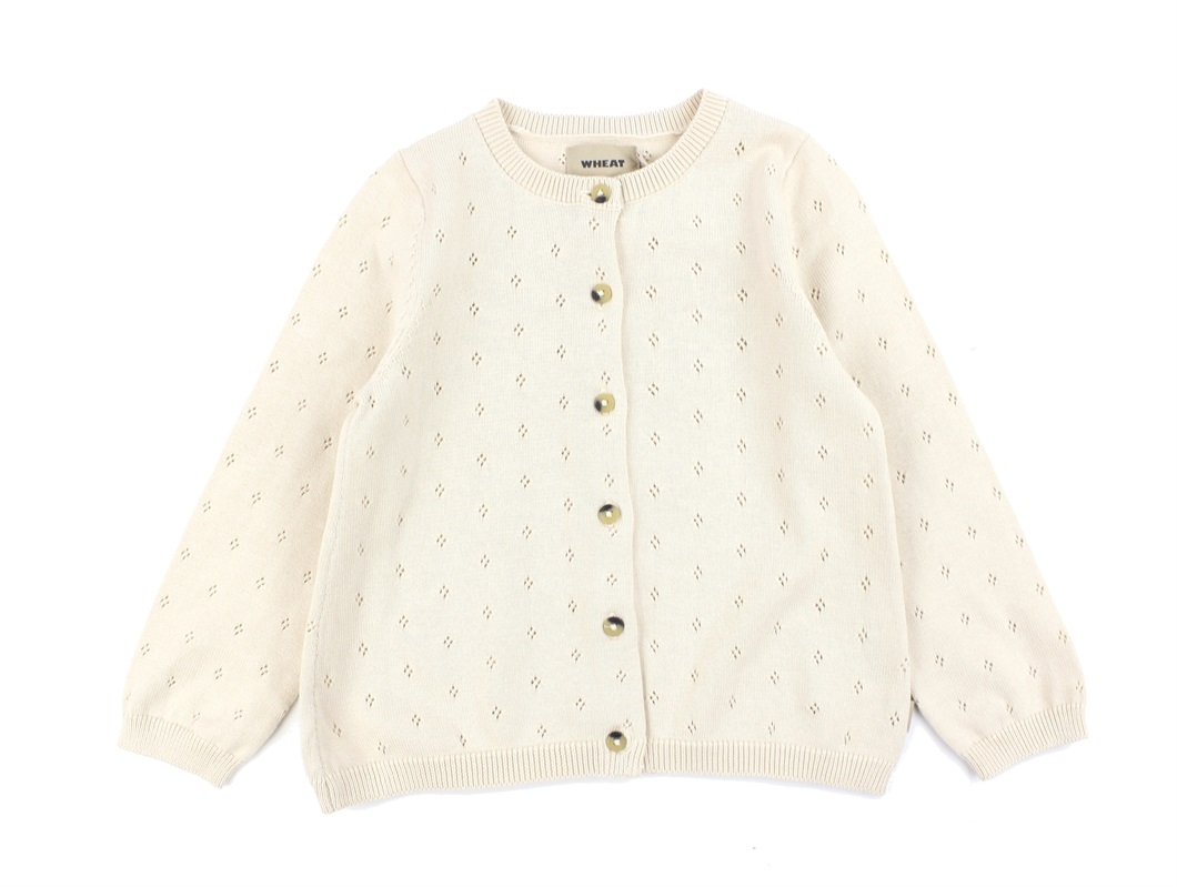 Strikcardigan med pointelle hulmønster i farven sandshell fra Wheat.