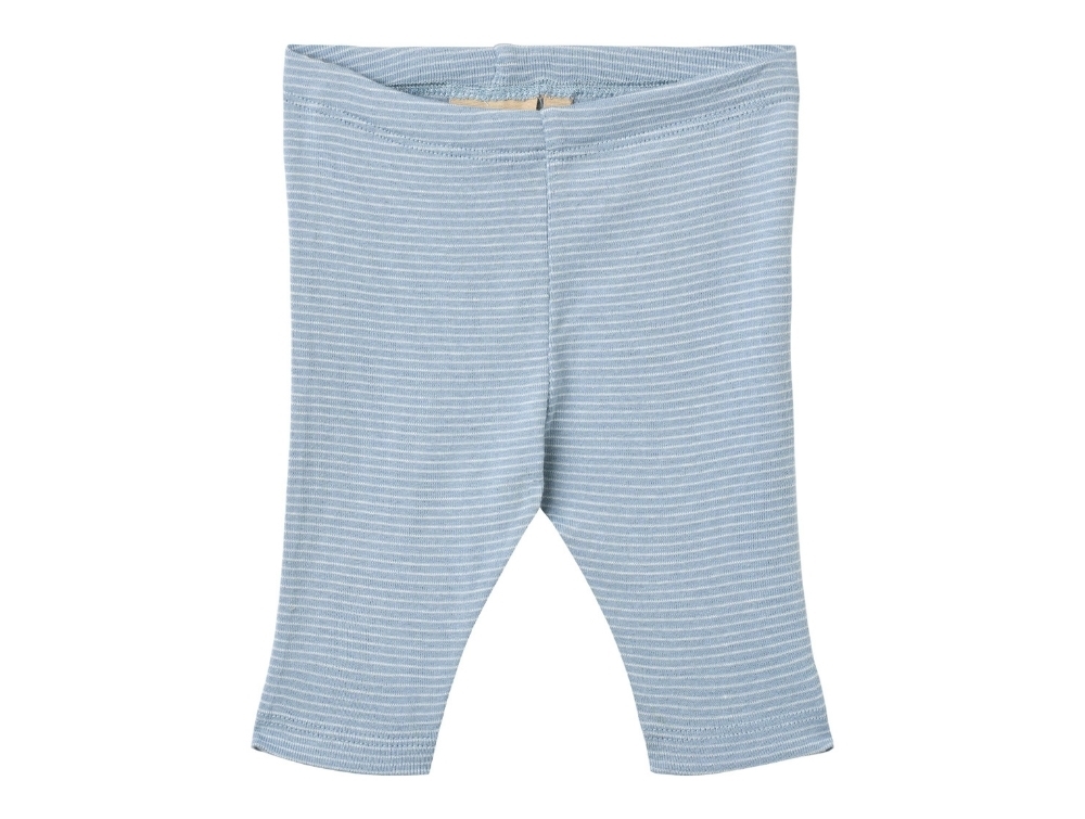 Bløde leggings med fine lyseblå og hvide striber (faded blue stripe) fra Wheat.