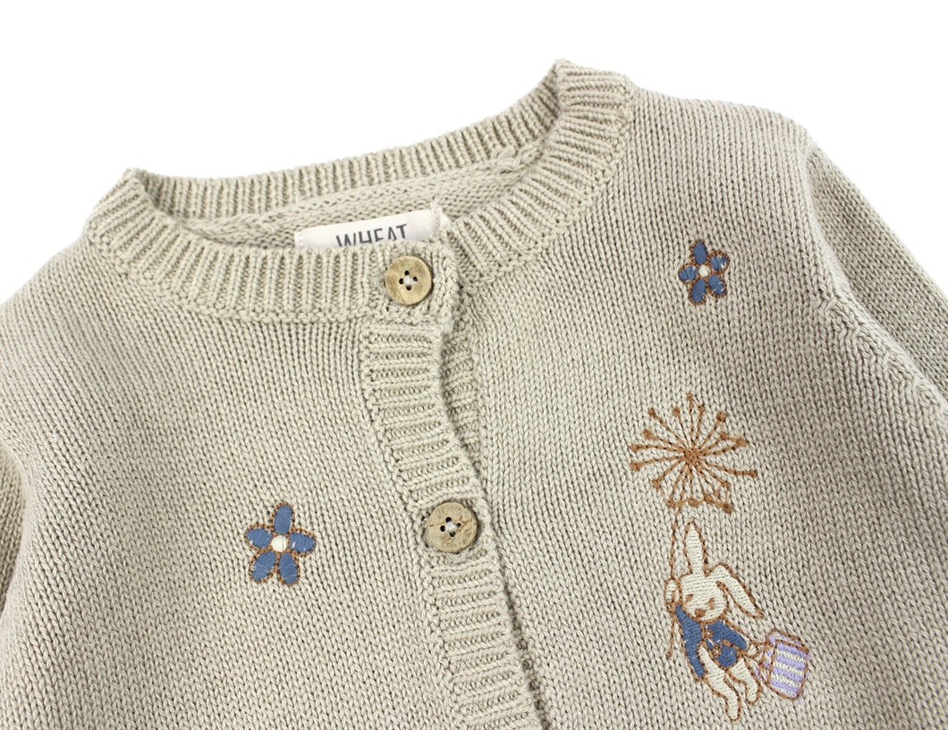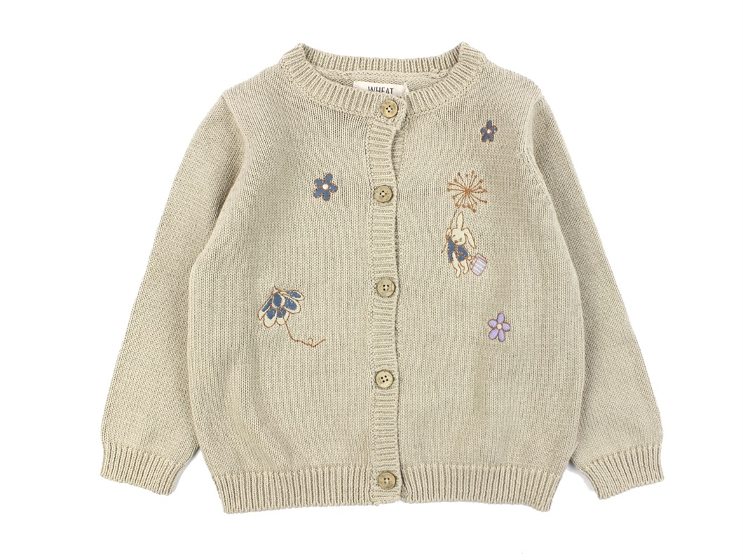 Strikcardigan i farven soft beige med broderidetaljer fra Wheat.