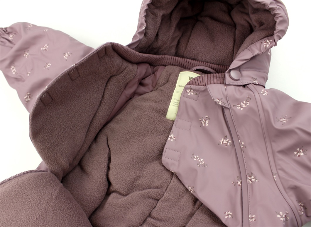 Gummiflyverdragt i farven soft lilac med blomsterprint fra Wheat.