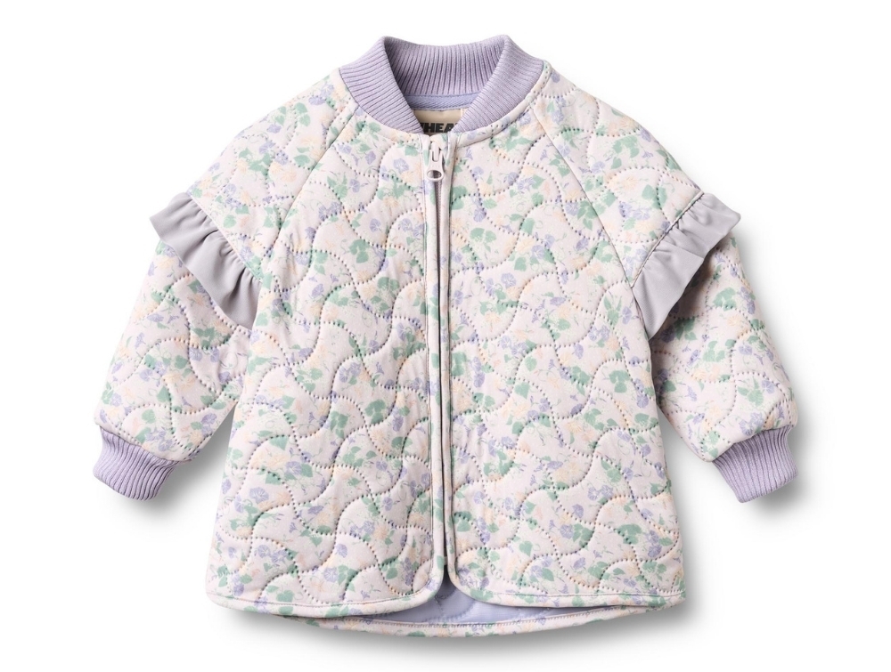 Termojakke med blomstret print (purple light petunias) fra Wheat.