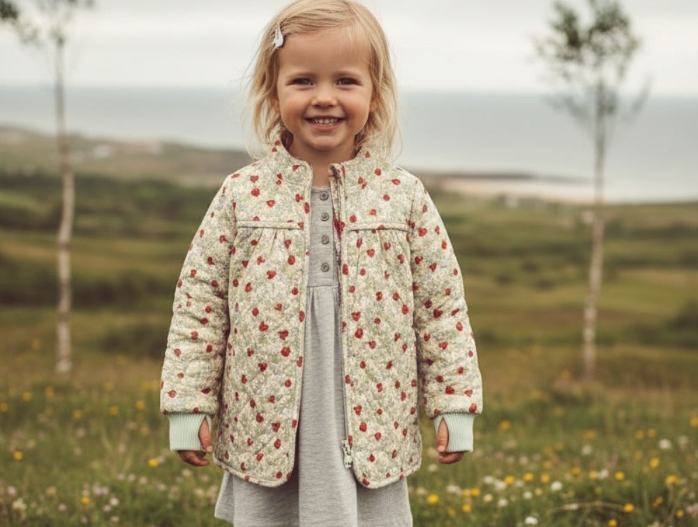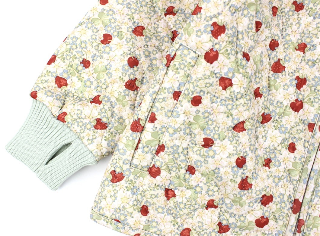 Termojakke med jordbærprint fra Wheat. Jakken har to lommer.