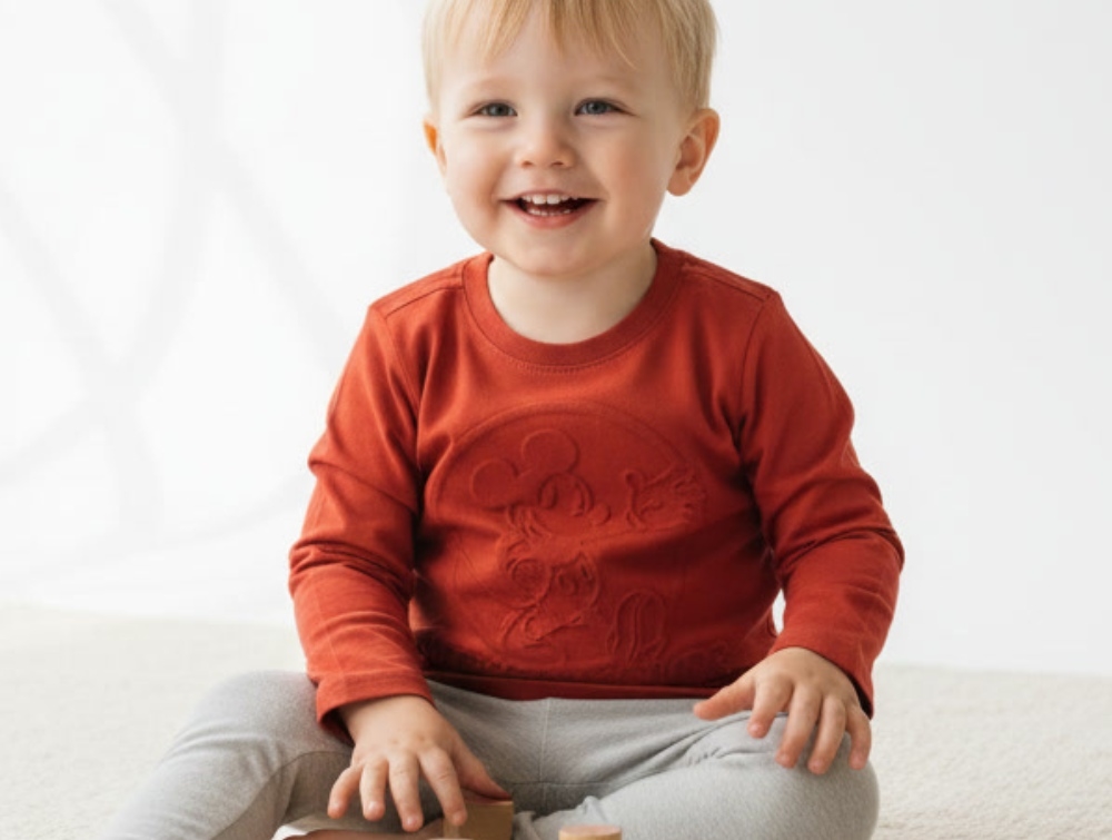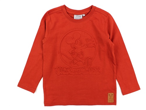 Langærmet t-shirt i farven paprika med Mickey embossing tryk fra Wheat.