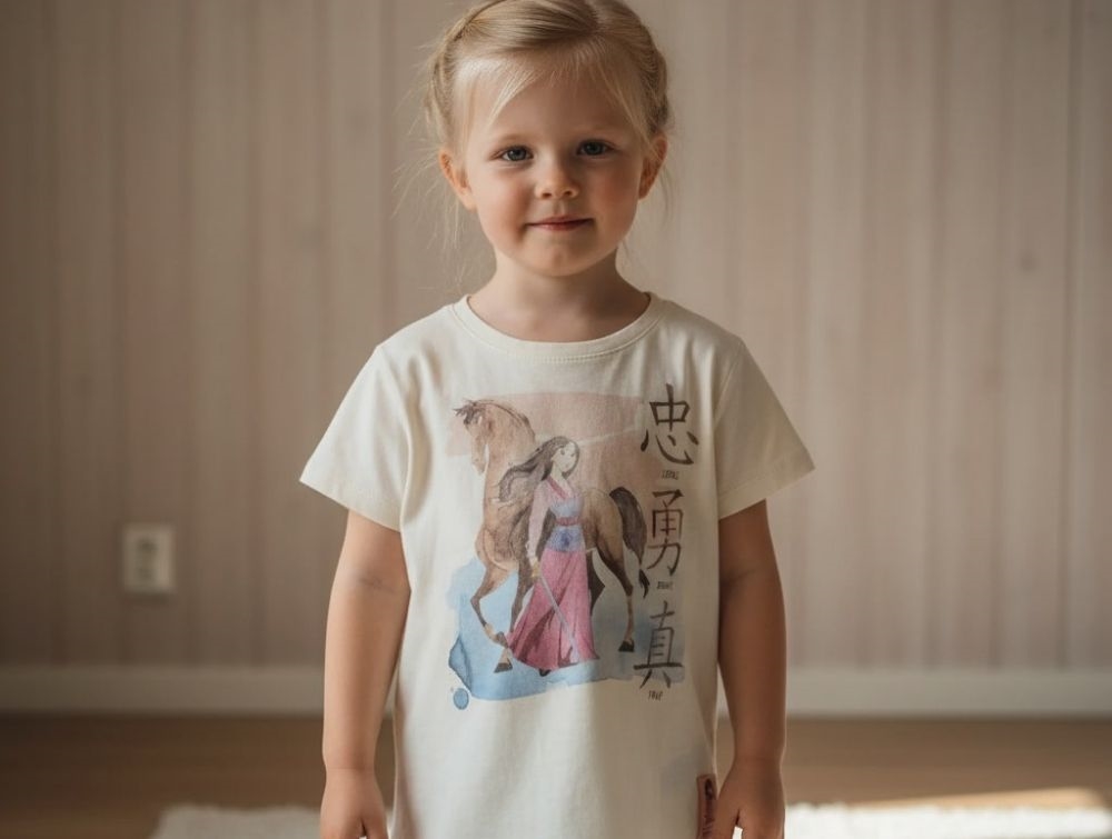 Elfenbensfarvet t-shirt med Disney's Mulan-print fra Wheat.