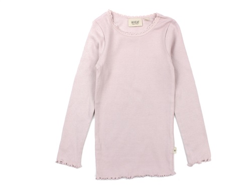 T-shirt i rib i farven soft lilac med blondekant fra Wheat.