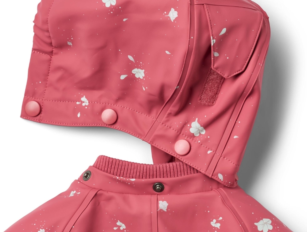Termoregndragt i pink nuance med blomsterprint fra Wheat.