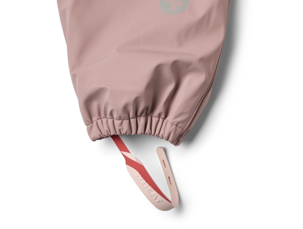 Wheat thermo regnbukser dusty lavender set forfraWheat thermo regnbukser dusty lavender set bagfraWheat thermo regnbukser dusty lavender med fodstrop detalje