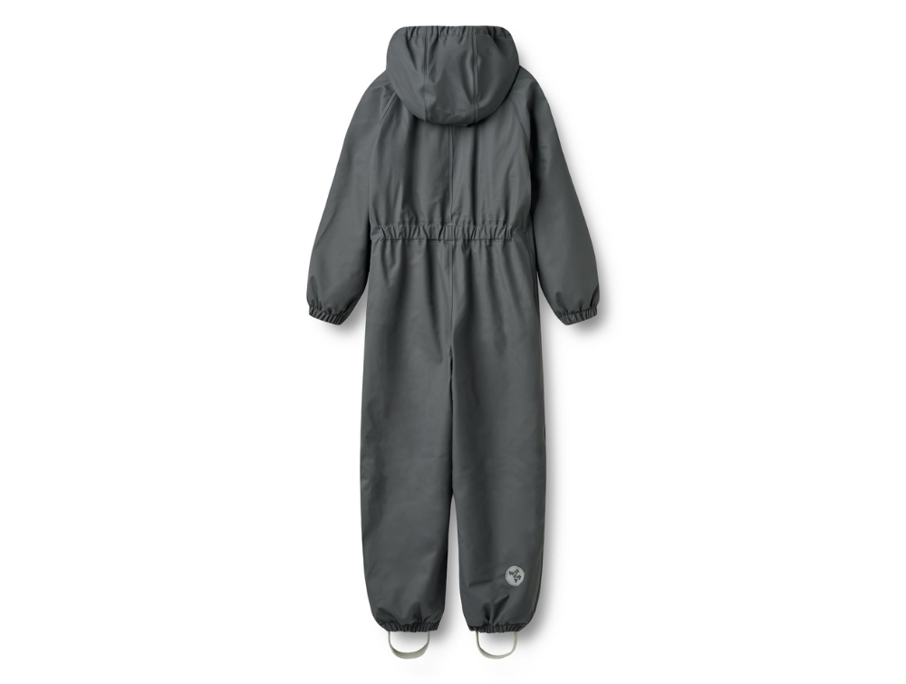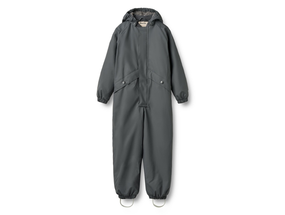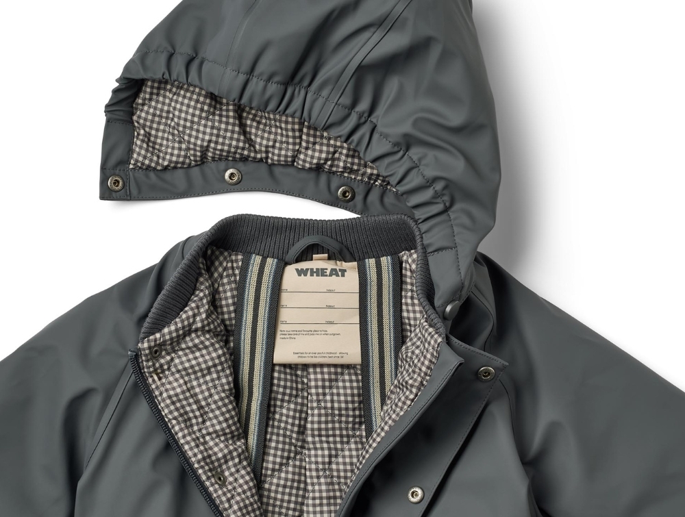 Termoregndragt i mørk blå nuance (greyblue) fra Wheat med quiltet for, seler og svejsede sømme – ideel som overgangsdragt.