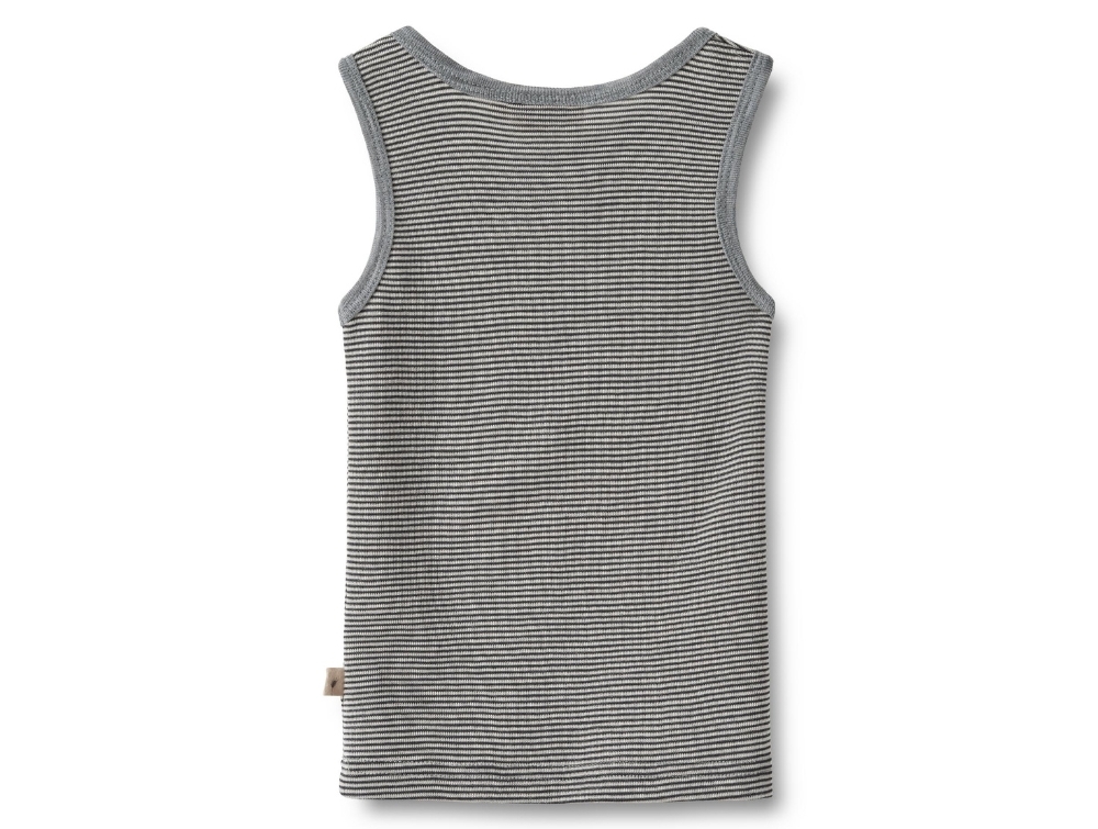 Tanktop i merinould med mørkeblå striber (navy stripes) fra Wheat.