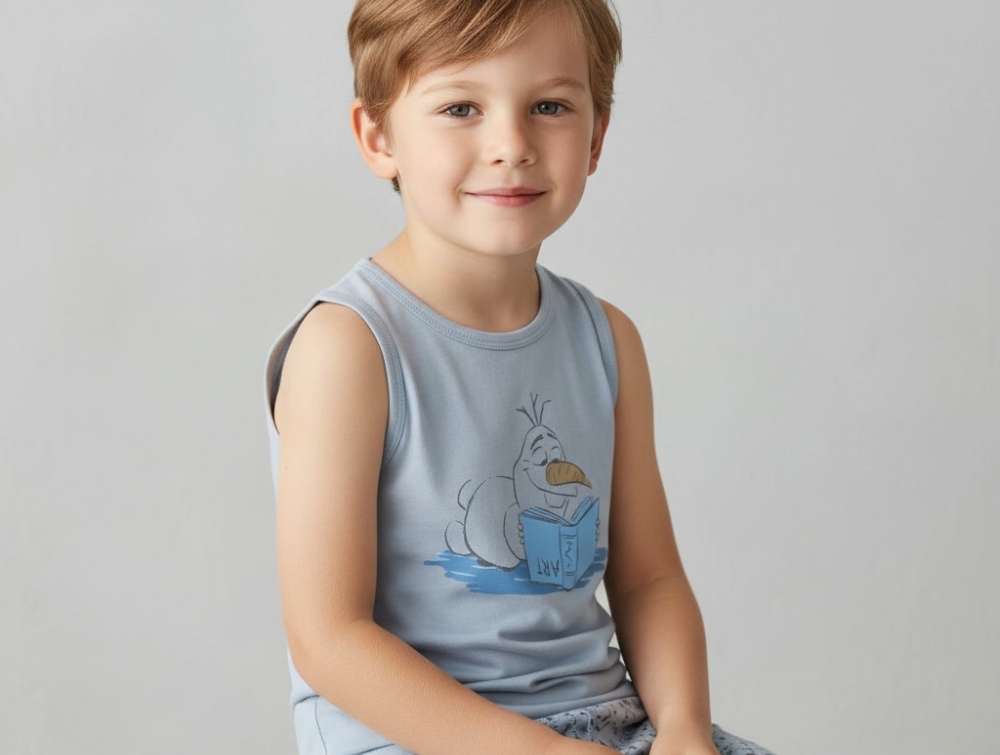 Undertøjssæt i farven dove med boxershorts og undertrøje med Frost Olaf-print fra Wheat.