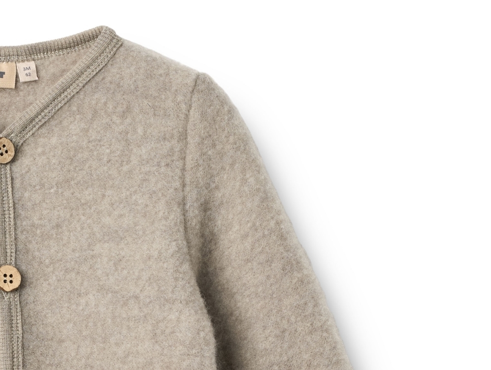 Mere information om Wheat Levi fleece ulddragt khaki melange med knaplukning