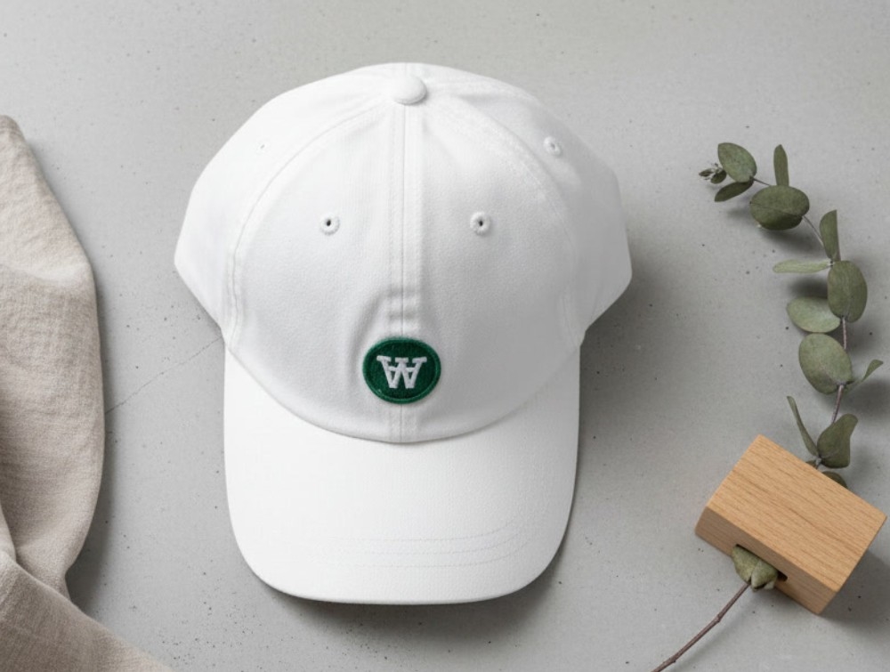 Kasket til børn i hvid med double A-patch fra Wood Wood.