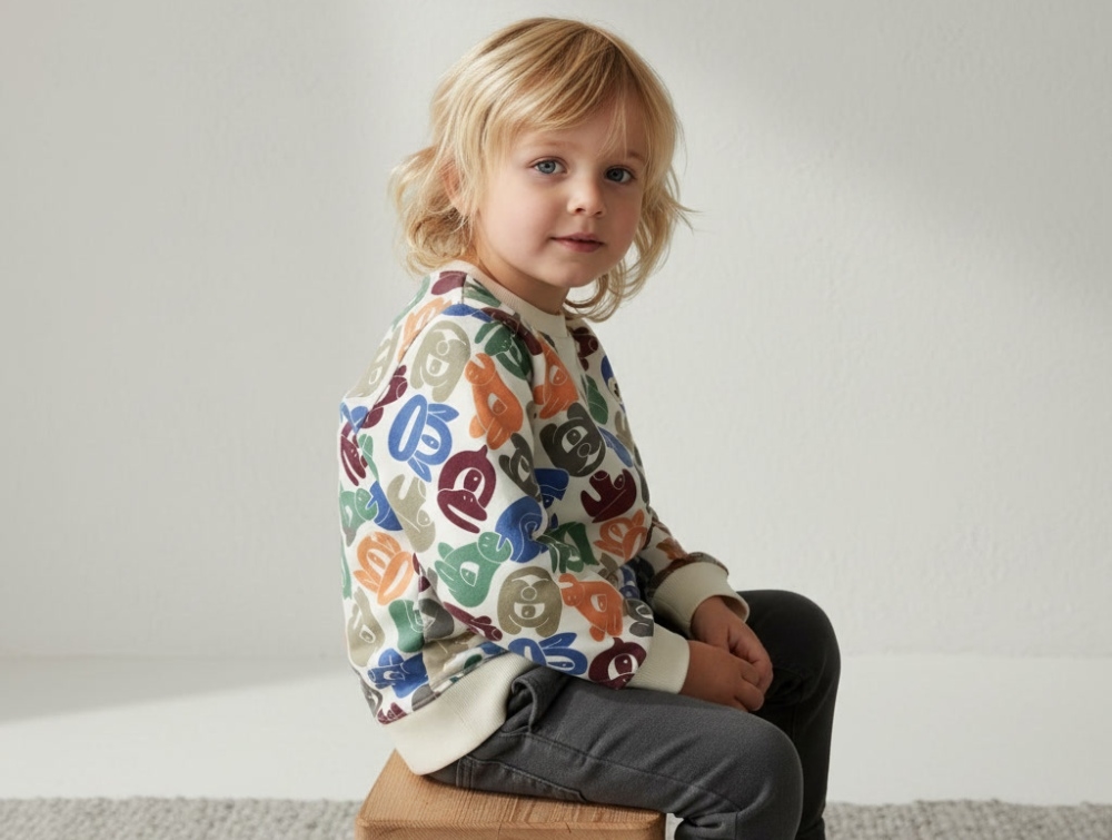 Sweatshirt med zoo-print og dobbelt A-patch fra Wood Wood.