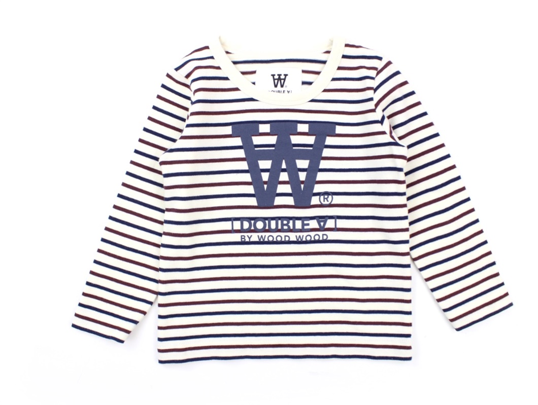 Bluse med striber i farven off-white/burgundy og dobbelt A-logo fra Wood Wood.