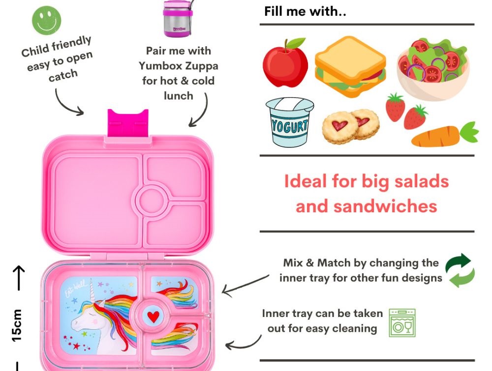 • Sjovt enhjørningprint i inderbakken gør frokosten mere spændende