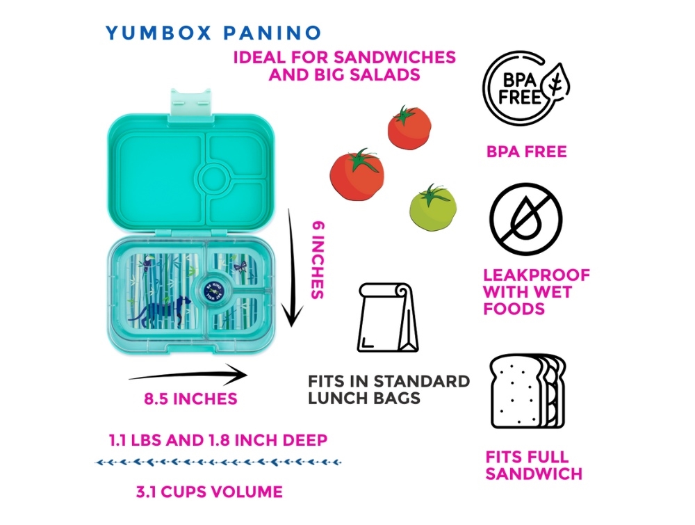 Yumbox Panino børnemadkassen er ideel til vuggestue, børnehave, skole og udflugter. Det smarte, børnevenlige design og de praktiske opdelinger gør det let at pakke en varieret og frisk frokost til dit barn.