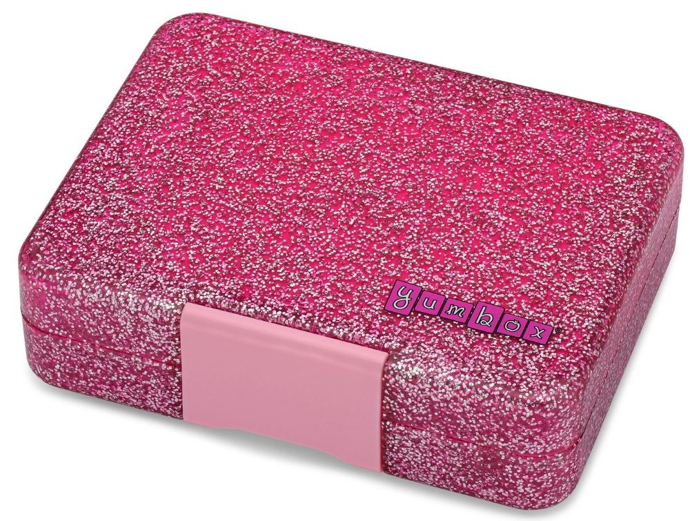 Bento madkasse med 3 rum i farven sparkle pink glitter fra Yumbox.